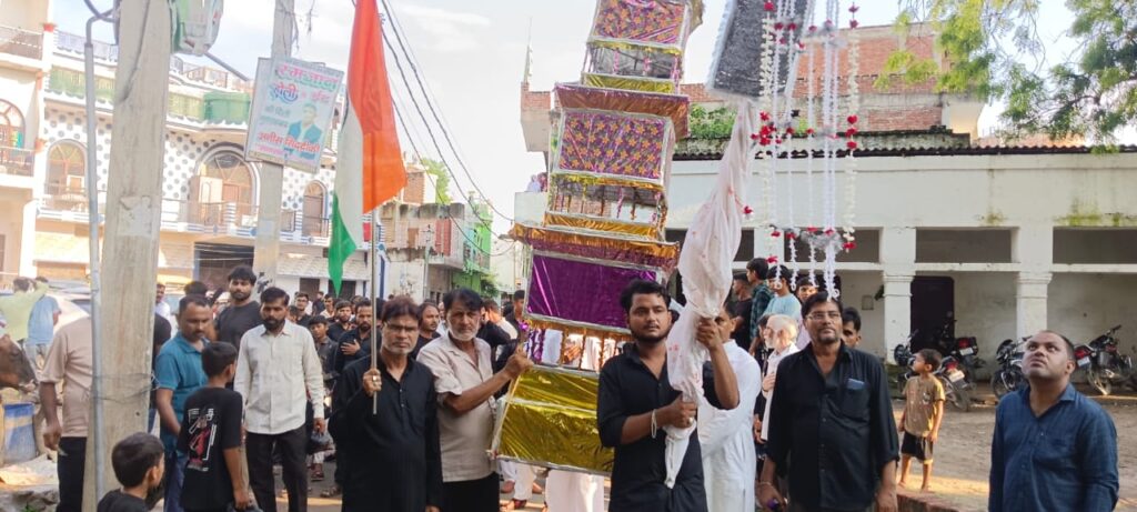 सौरिख कन्नौज। मोहर्रम कमेटी अध्यक्ष अली अब्बास ने बताया कि इमाम हुसैन ब उनके इकहत्तर साथियों को आज से लगभग चौदह सौ साल पहले एक आतंकवादी यजीद ने मोहर्रम की दस तारीख को शहीद करवा दिया था मगर इमाम हुसैन की लाश चालीस दिन तक बेगोरो कफ़न पढ़ी रही जब चालीस दिन के बाद इमाम हुसैन को दफनाया गया उन्हीं की याद में चेहल्लुम मनाया जाता है इमाम हुसैन को हो सके तो करीब से देखिएगा उनके इतिहास में 6 महीने के बच्चे से लेकर 80 साल के बूढ़े तक की शहादत हुई है सच के लिए इमाम हुसैन की कुर्बानी इतिहास में भरी पड़ी है अपने खुद के दिल पर अपना काबू पाकर देखो कि कैसे 72 लोग लाखों के लश्कर पर भारी पढ़ गए ।इमाम हुसैन का आंदोलन सत्य के लिए असत्य के विरुद्ध एक आंदोलन था कर्बला का जुल्म हमे हमेशा याद दिलाएगा कि जुल्म करने वाला चाहे जितना बड़ा आतंकवादी क्यों न हो एक दिन उसका मिटना तय है ।जुलूस से पहले सुबह कबीरपुर में मजलिसे हुईं जिसको आली जनाब मौलाना मज़हर इमाम व आली जनाब मौलाना नेमत अली दिल्ली ने खिताब किया उसके बाद राजापुर व कबीरपुर का जुलूस कर्बला में पहुंचा और वहां पर ताज़िए सुपुर्द खाक किए गए।दोपहर मोहल्ला ऊंचा अल मेहदी इमामबाड़े पर मजलिस का आयोजन किया गया जिसको आली जनाब मौलाना मज़हर इमाम लखनऊ ने खिताब फरमाया उसके बाद इमामबाड़ा इब्ने हसन पर नौजवानों और बच्चों ने नौहा ख्वानी और मातम किया वहां से अलम ताजिया जुलूस सदर बाज़ार, पाल तिराहा ,आंबेडकर तिराहा ,CSB रोड रास्ते में रुक रुक कर नौहा ख्वानी और मातम करते हुए कर्बला पहुंचा और ताज़िए सुपुर्दे ख़ाक किए गए इस मौके पर मोहर्रम कमेटी अध्यक्ष अली अब्बास,तौसीफ यूसुफ,अली अख्तर, तहज़ीबुल हसन, ग़ुलाम अब्बास,हुसैन हैदर ,शमसुल हसन,अली अख्तर,मुशर्रफअली, नाज़िम हुसैन,शीलू नकवी,हैदर अब्बास,शब्बर अली , आदि गणमान्य लोग मौजूद रहे तथा पुलिस प्रशासन की चाक चौबंद व्यवस्था रही ।