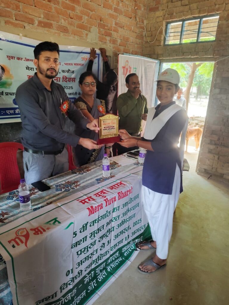 कन्नौज।पूर्व प्रधानमंत्री स्वर्गीय राजीव गांधी की जयंती के अवसर पर आज सद्भावना दिवस पर भाषण प्रतियोगिता का आयोजन किया गया। यह कार्यक्रम युवा कार्यक्रम एवं खेल मंत्रालय, भारत सरकार के अंतर्गत मेरा युवा भारत, कन्नौज के तत्वावधान में एस.डी.जे.पी. इंटर कॉलेज, जदेपुरवा बेलमाऊ सरैया में आयोजित किया गया। कार्यक्रम का शुभारंभ जिला युवा अधिकारी कन्नौज श्री सागर माहेश्वरी एवं विद्यालय की प्रधानाचार्या कु. कुमकुम कटियार द्वारा दीप प्रज्वलन एवं मां सरस्वती के चित्र पर पुष्प अर्पित कर किया गया।तत्पश्चात छात्रों ने पूर्व प्रधानमंत्री राजीव गांधी जी के चित्र पर माल्यार्पण कर उन्हें श्रद्धांजलि अर्पित की। इस अवसर पर जिला युवा अधिकारी सागर माहेश्वरी ने राजीव गांधी जी के जीवन चरित्र, उनके योगदान और विचारों पर प्रकाश डालते हुए युवाओं को उनकी प्रेरणादायी नीतियों से अवगत कराया।साथ ही “नशा मुक्त भारत अभियान” के तहत छात्रों को नशे से दूर रहने और समाज में जागरूकता फैलाने के लिए प्रेरित किया। अभियान के अंतर्गत शपथ लेने वाले प्रतिभागियों को प्रमाण पत्र देकर सम्मानित भी किया गया। भाषण प्रतियोगिता में छात्रों ने उत्साहपूर्वक भाग लिया। प्रतियोगिता में प्रथम स्थान पर महक सिंह, द्वितीय स्थान पर नम्रता एवं तृतीय स्थान पर उजाला रहीं।विजेता प्रतिभागियों को मोमेंटो एवं प्रमाण पत्र देकर सम्मानित किया गया।कार्यक्रम के अंत में “एक पेड़ माँ के नाम” अभियान के तहत पौधारोपण किया गया, जिसके माध्यम से छात्रों एवं शिक्षकों ने पर्यावरण संरक्षण और अधिक से अधिक वृक्षारोपण का संदेश दिया। कार्यक्रम का सफल संचालन मो० मुनव्वर ने किया। कार्यक्रम में चक्रेश पांडे, अजमेर, अजय, सचिन, आनंद सहित अनेक गणमान्य लोगों की उपस्थिति रही। यह आयोजन न केवल युवाओं में राष्ट्रीय एकता और सद्भावना की भावना को प्रबल करने वाला रहा, बल्कि नशा मुक्ति एवं पर्यावरण संरक्षण जैसे सामाजिक संदेश भी प्रदान कर गया।