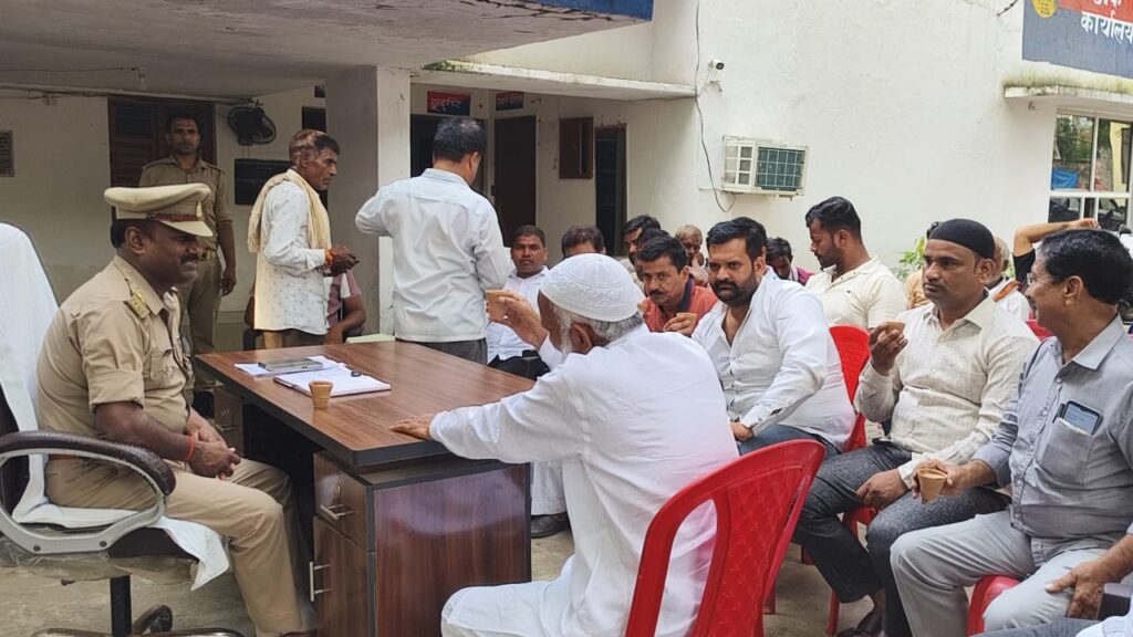 थाना परिसर में ड्रोन को लेकर थाना प्रभारी ने बुलाई बैठक।