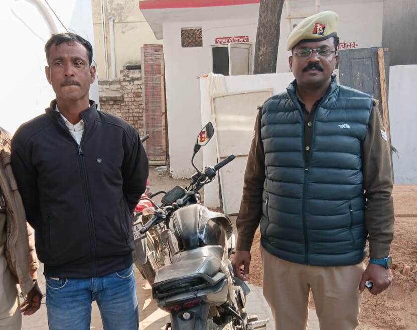 कन्नौज। लूट की घटना का सफल अनावरण करते हुए एक शातिर अभियुक्त को पुलिस ने गिरफ्तार कर लिया है। सदर थाना कोतवाली प्रभारी निरीक्षक जितेन्द्र प्रताप सिंह, वरिष्ठ उपनिरीक्षक मो. अकरम, उपनिरीक्षक दिनेश कुमार सिंह, हेड कांस्टेबल मनोज कुमार ने पुलिस बल के साथ मुखबिर की सूचना पर लूट के अभियुक्त महफूज पुत्र हवलदार निवासी ग्राम अहमदपुर रौनी, कोतवाली सदर को गुरसहायगंज थाना क्षेत्र के ग्राम सौसरापुर में चल रहे उर्स मेले से गिरफ्तार कर कब्जे से लूटी गई एक मोटरसाइकिल टीवीएस राइडर (ब्लैक कलर) तथा 1000 रुपये नकद बरामद किए। गिरफ्तारी के बाद अभियुक्त के विरुद्ध विधिक कार्रवाई करते हुए उसे न्यायालय में पेश न्यायिक अभिरक्षा में भेज दिया गया। वादी द्वारा दर्ज कराई गई रिपोर्ट के अनुसार 10 दिसंबर 2025 की शाम करीब 6:30 बजे मोटरसाइकिल सवार दो अज्ञात व्यक्तियों ने वादी से उसकी मोटरसाइकिल यूपी 74 एके 1083 (टीवीएस राइडर), जेब में रखा ओप्पो एफ-31 मोबाइल फोन तथा 3500 रुपये लूट लिए थे। इस संबंध में 12 दिसंबर को सदर कोतवाली में मुकदमा दर्ज किया गया था। गिरफ्तार अभियुक्त महफूज के विरुद्ध पूर्व में भी गंभीर आपराधिक मामले दर्ज हैं, जिनमें वर्ष 2006 में हत्या तथा वर्ष 2007 में चोरी व माल बरामदगी से संबंधित मुकदमे शामिल है।
