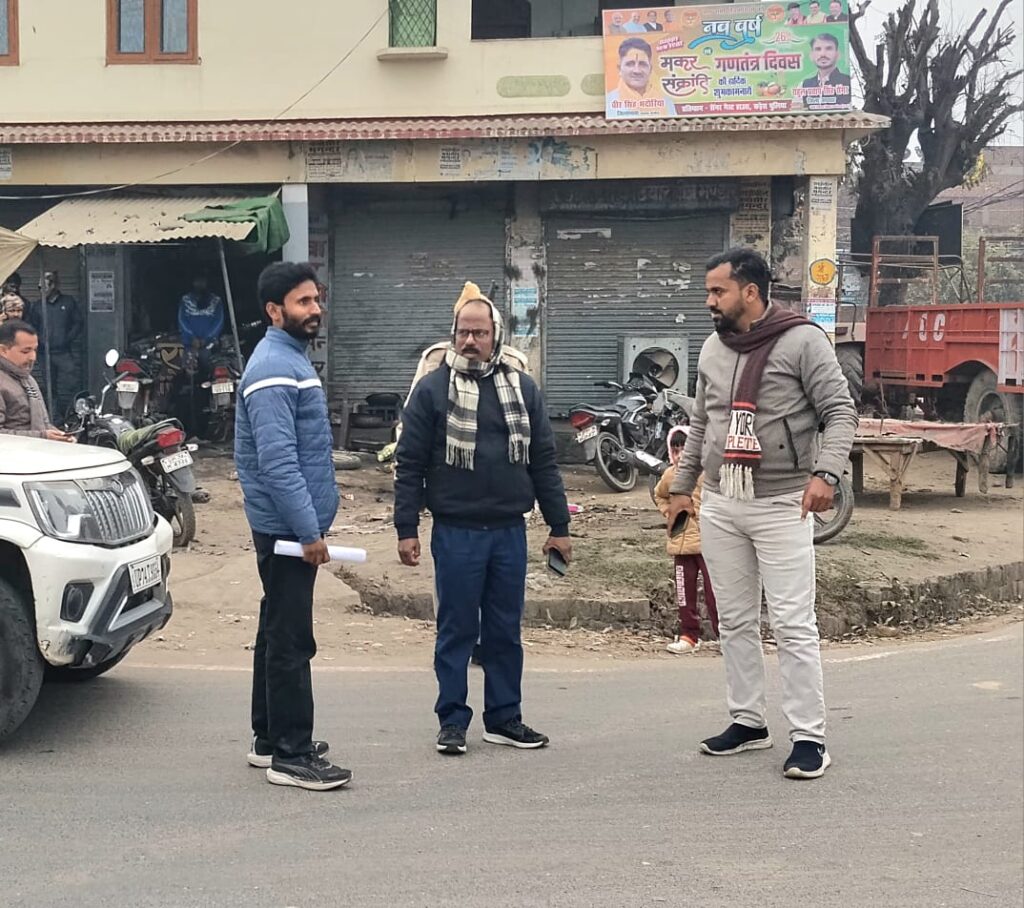 ठठिया कन्नौज। मानीमऊ तिराहे पर ठठिया मे लगने वाली आजादी के महानायक क्रांतिकारी चंद्रशेखर आजाद की प्रतिमा के लिए उपजिलाधिकारी राजेश कुमार चौरसिया ने भाजपा आईटी सेल कन्नौज जिलाध्यक्ष अभिषेक पाण्डेय के साथ भूमि का निरीक्षण किया । इस दौरान राजस्व टीम ने भूमि को चिन्हित कर तिराहे पर निशान लगाया। उपजिलाधिकारी ने जानकारी देते हुए बताया कि बहुत जल्द तिराहे पर प्रतिमा स्थापना होगी। इस दौरान जिलाध्यक्ष अभिषेक पाण्डेय ने कहा कि मां भारती को गुलामी की जंजीरो से आजाद कराने के लिए महापुरुष क्रांतिकारी चंद्रशेखर आजाद ने फिरंगियो को घुटने टेकने पर मजबूर कर दिया था और स्वंय बलिदान देकर अमर हो गए थे। यह ठठिया क्षेत्र की जनता का सौभाग्य है जो उनके तिराहे पर महानायक की मूर्ति अनंतकाल के लिए स्थापित होने जा रही है। इस दौरान हरिओम ओमर, सौरभ कुशवाह, लेखपाल अभिषेक यादव समेत आमजनमानस मौजूद रहा।