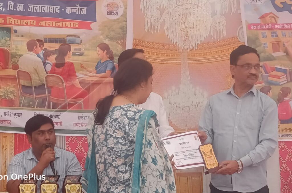 जलालाबाद, कन्नौज। पूर्व माध्यमिक विद्यालय जलालाबाद में बुधवार को स्कूल चलो अभियान के अंतर्गत एक प्रेरक कार्यक्रम का आयोजन किया गया। कार्यक्रम में मुख्य अतिथि के रूप में खंड शिक्षा अधिकारी शिवेंद्र कुमार वर्मा उपस्थित रहे। उनके साथ डायट मेंटर राजेश कुमार वर्मा, एआरपी राकेश कुमार, रंजना पाठक, शिक्षक संघ के जिला अध्यक्ष सुशील कुमार यादव सहित न्याय पंचायत जलालाबाद के समस्त प्रधानाध्यापक मौजूद रहे। कार्यक्रम के दौरान निपुण विद्यालयों के प्रधानाध्यापकों को सम्मानित किया गया। साथ ही निपुण बच्चों एवं नव प्रवेश लेने वाले छात्र- छात्राओं को भी प्रोत्साहन स्वरूप सम्मान प्रदान किया गया। इसके अतिरिक्त विभिन्न प्रतियोगी परीक्षाओं में सफलता प्राप्त करने वाले विद्यार्थियों को पुरस्कृत कर उनका उत्साहवर्धन किया गया। अतिथियों ने अपने संबोधन में शिक्षा के महत्व पर प्रकाश डालते हुए अभिभावकों से अधिक से अधिक बच्चों का विद्यालयों में नामांकन कराने की अपील की। कार्यक्रम का उद्देश्य बच्चों में शिक्षा के प्रति रुचि बढ़ाना और उन्हें आगे बढ़ने के लिए प्रेरित करना रहा।